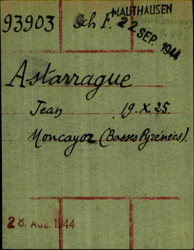 LE 16 SEPTEMBRE 1944, il est transféré à Mauthausen (Autriche) et est immatriculé 97557.