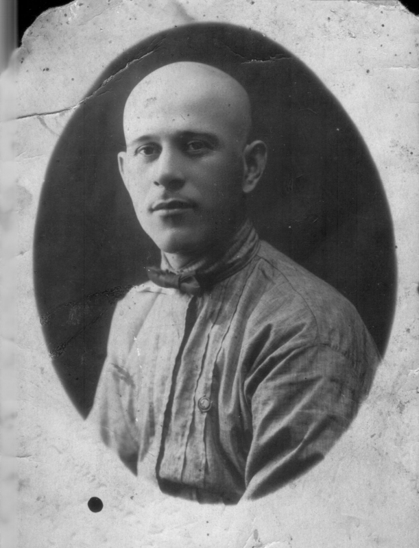 To the left of my grandfather is Basya, my father's sister. Directly above her is her Husband Baynes. During the evacuation, Basya buried two daughters – Olenka, my age, and little Firochka. The fate of Baynes is still unknown.