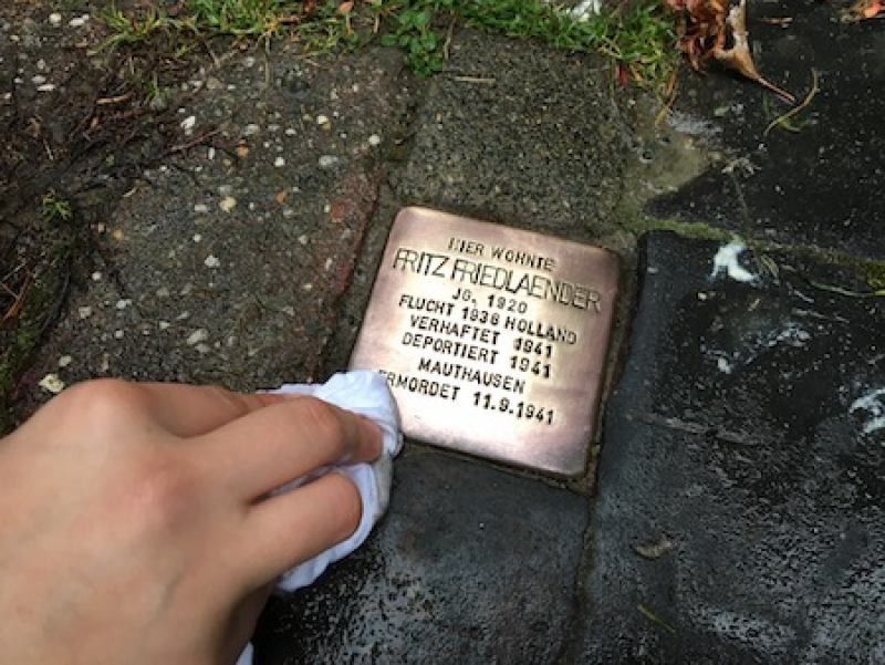 Die 10f2 behandelt im Moment im Fach Geschichte das Thema Nationalsozialismus und hat den Jahrestag der Reichspogromnacht am 9. November zum Anlass genommen, heute im Geschichtsunterricht an Fritz Friedlaender, jüdischer Schüler des Athenaeums, zu erinnern, der am 28. August 1935 die Schule verlassen musste. Fritz wurde am 3. Februar 1920 in Stade geboren, sein Vater betrieb ein privates Bankhaus in Stade. Fritz und seine Schwester Lotte, die das Stader Lyzeum besuchte, wurden ab 1933 von ihren Mitschülern zunehmend ausgegrenzt und lebten vollkommen isoliert. Lotte geht noch 1933 von der Schule ab und emigriert nach England. Fritz zieht zunächst zu einem Onkel nach Berlin und bereitet sich ab 1936 auf eine Auswanderung nach Südamerika vor. Im Juli 1938 geht er in ein landwirtschaftliches Werkdorf in den Niederlanden. Nach der deutschen Besetzung Hollands wird er 1941 verhaftet und im Juni 1941 in das Konzentrationslager Mauthausen deportiert, wo er am 11. September 1941 ermordet wird.