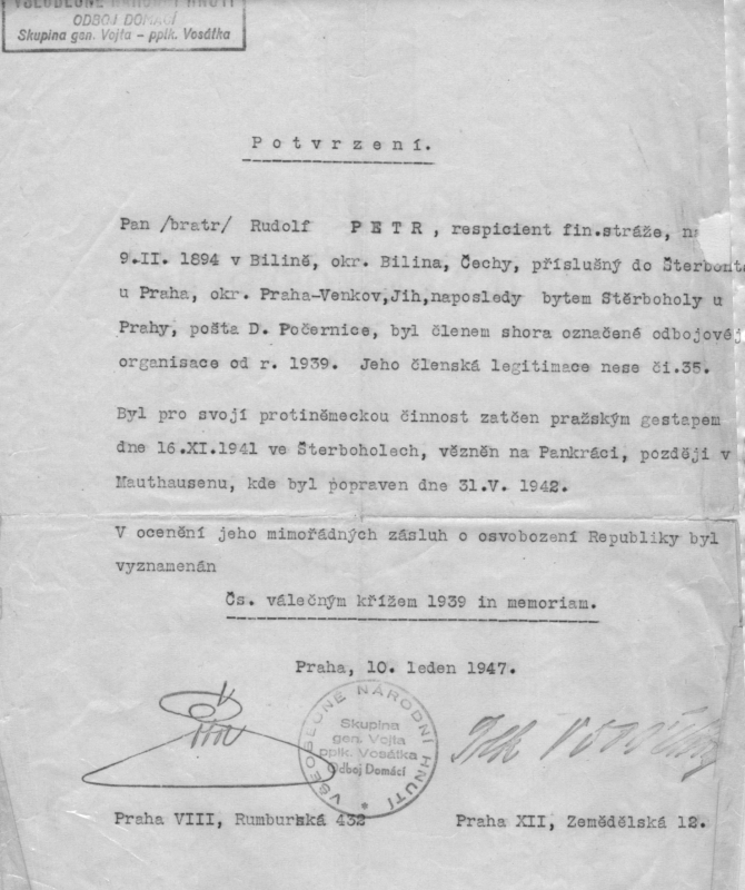 Zemřel 31.5.1942 v Mauthausen