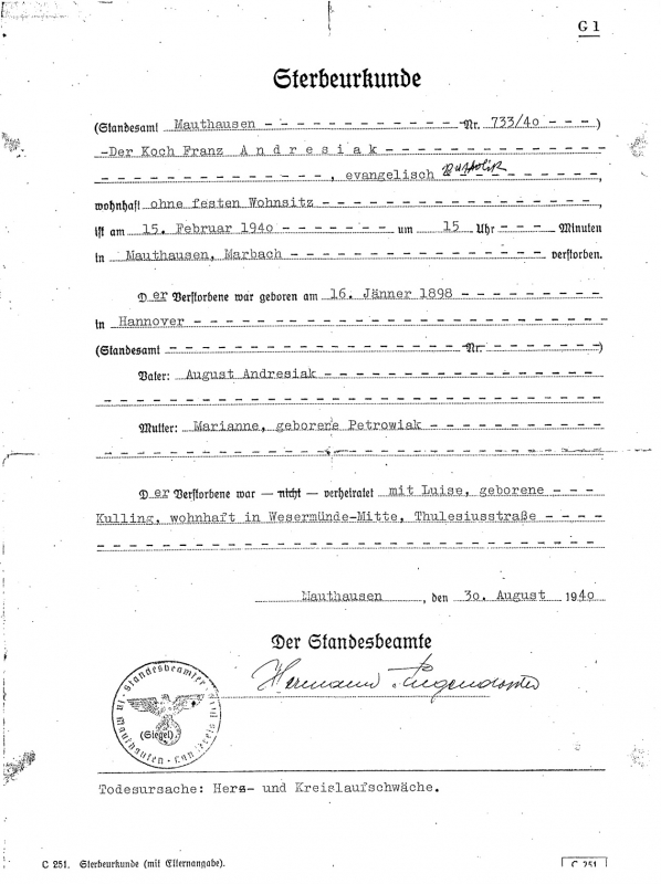 Died 15.2.1940 in Mauthausen
