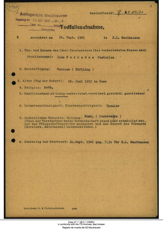 Luis Albo Camus, nació en Castro Urdiales (Cantabria) el 18 de Julio de 1902. Fue deportado al Campo de concentración de Mauthausen el 27 de enero de 1941, con el número de ... Seguir leyendo