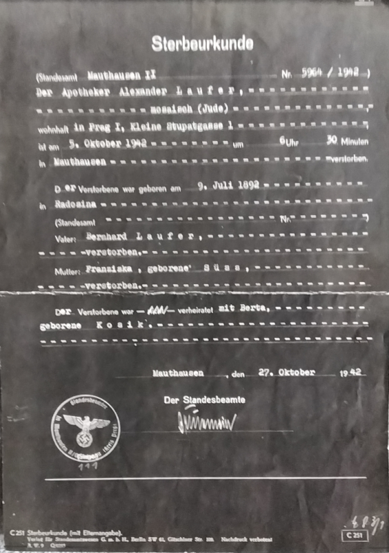 Gestorben 5.10.1942 in Mauthausen