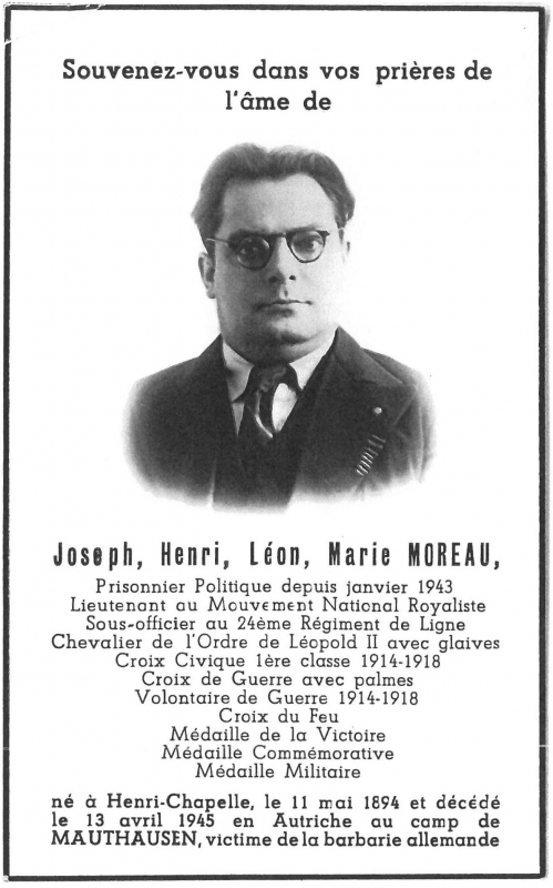 Source: Famille Moreau, AMICALE NATIONALE DES PRISONNIERS POLITIQUES ET AYANTS DROIT DU CAMP DE CONCENTRATION DE MAUTHAUSEN - Belgique