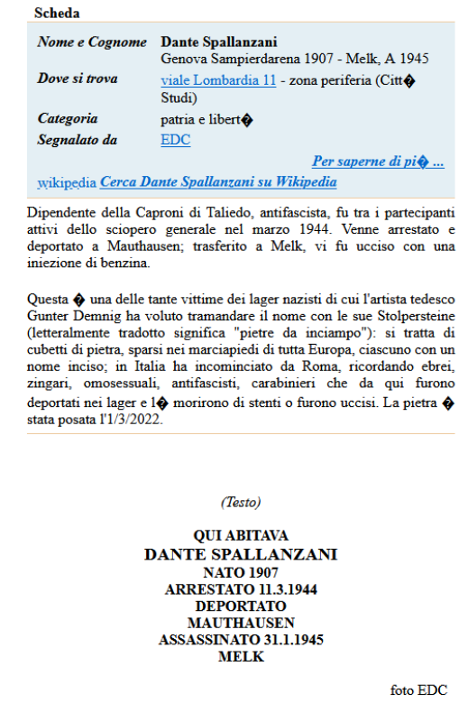Dante Spallanzani nato a Sampierdarena (Genova) il 9 agosto 1907, abitava a Milano, in Viale Lombardia 11. Lavorava alla Caproni. Arrestato l’11 marzo 1944, deportato a Mauthausen (numero di ... Continuare a leggere