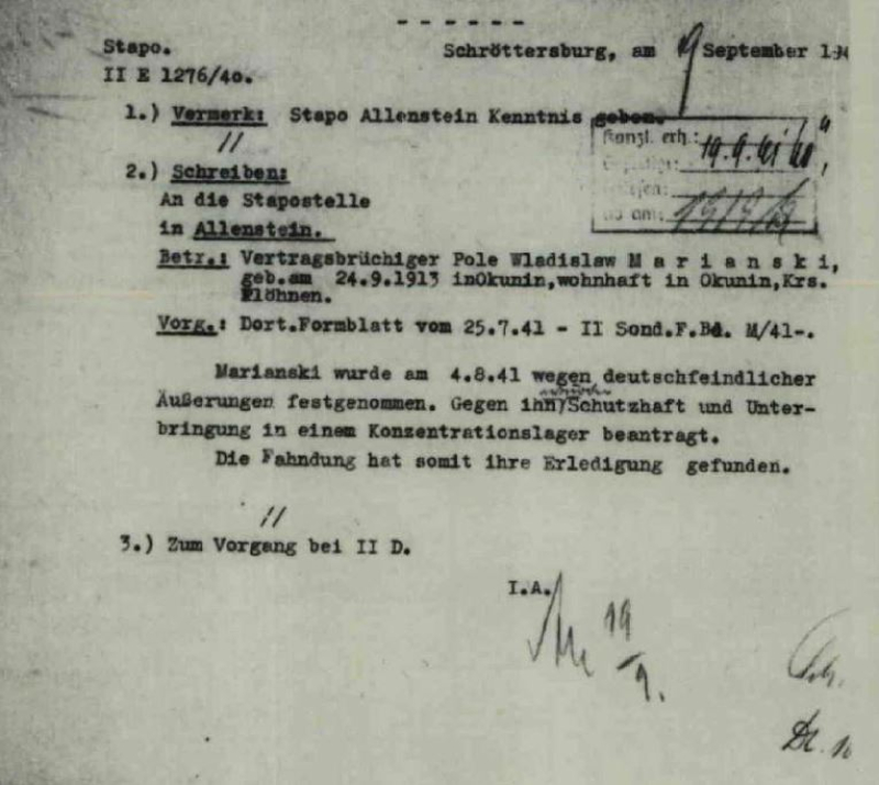 4 kwietnia 1941 r. Urząd Pracy w Nowym Dworze Mazowieckim wysłał Władysława Mariańskiego ze wsi Okunin w powiecie płoński na roboty przymusowe w Pillau w Prusach Wschodnich. Wywieziono go transportem ... Czytaj dalej