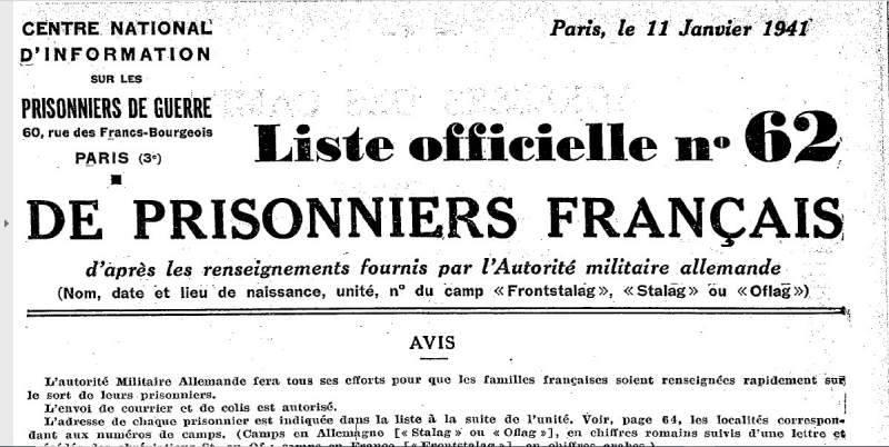 Las listas de prisioneros de guerra se pueden consultar y descargar en gallica.bnf.fr de la Bibliothèque Nationale de France.