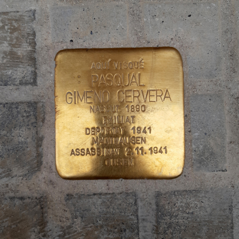 Pasqual Gimeno Cervera (1894 - 1941) wurde am 29. April 1894 in Barcelona geboren und war Sohn von Pasqual Gimeno und Isabel Cervera. Er wohnte im Carrer General Padrós Nr. 23 in Caldes de Montbui und hatte vier Geschwister, Isabel, Carme, Maria und Josep. Er war mit Montserrat Cortés Mestres verheiratet, mit der er vier Kinder, Montserrat, Carles, Rosa und Josep hatte. Pasqual kämpfte auf Seiten der Republikaner und ging nach Frankreich ins Exil. Dort wurde er 1940 von den Deutschen gefangen genommen. So wie Alexandre Folch kam Gimeno ins Stalag VIII-C in Żagań und später ins Stalag XII-D in Trier. Von dort wurde er am 25. Jänner 1941 nach Mauthausen (Häftlingsnummer 4947) deportiert und am 12. Februar nach Gusen überstellt, wo er am 2. November 47-jährig starb.