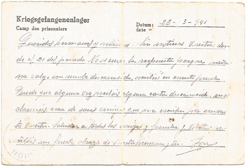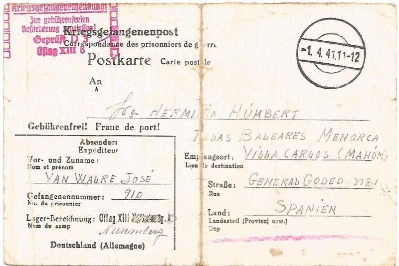 José van Walré Coloma nació en el pueblo de Villa-Carlos (Menorca) el día 4 de julio de 1902. Hijo de Juan van Walré Vela y de Josefa Coloma Llabrés. Era una persona muy interesada por la cultura y por el afán de aprender, amante de los deportes y la gimnasia. Buena persona, muy familiar y siempre preocupado por el bienestar de los demás y de los más débiles. Muy joven ingresó en el ejército llegando al empleo de sargento del arma de Ingenieros en el año 1925. Ascendió a brigada durante la república y una vez iniciada la Guerra Civil Española en 1936, al quedar la isla de Menorca en manos republicanas, ascendió a los empleos de teniente y finalmente de capitán. Al finalizar la guerra y caer Menorca en manos franquistas en el año 1939, tuvo que exiliarse a Francia para no ser fusilado. Una vez allí colaboró con el ejército francés contra los alemanes en la recién iniciada Segunda Guerra Mundial. Al caer Francia en poder de los nazis, acabó recluido en el campo de prisioneros Oflag XIII de Nuremberg. Allí permaneció prisionero hasta el mes de mayo de 1941 conservando el trato de oficial del ejército y con buenas condiciones de vida en todos los aspectos. El día 30 de mayo de 1941 ingresó junto con 54 prisioneros más en el campo de concentración de Mauthausen. Al cabo de un mes fue trasladado al campo de concentración de Gusen. Seis meses después de su llegada a Mauthausen, soportando unas condiciones de vida horribles, fue asesinado o no pudo soportar más la tortura y malos tratos y falleció en Gusen el día 6 de diciembre de 1941. A Menorca no llegaron noticias suyas desde marzo de 1941 y no se supo de su fallecimiento hasta la década de 1960. Fue añorado por su familia, quien todavía hoy le recuerda, le tiene presente en su memoria y siente la pena por haber perdido a un ser querido en unas condiciones tan terribles, que nunca se debieron haber producido.