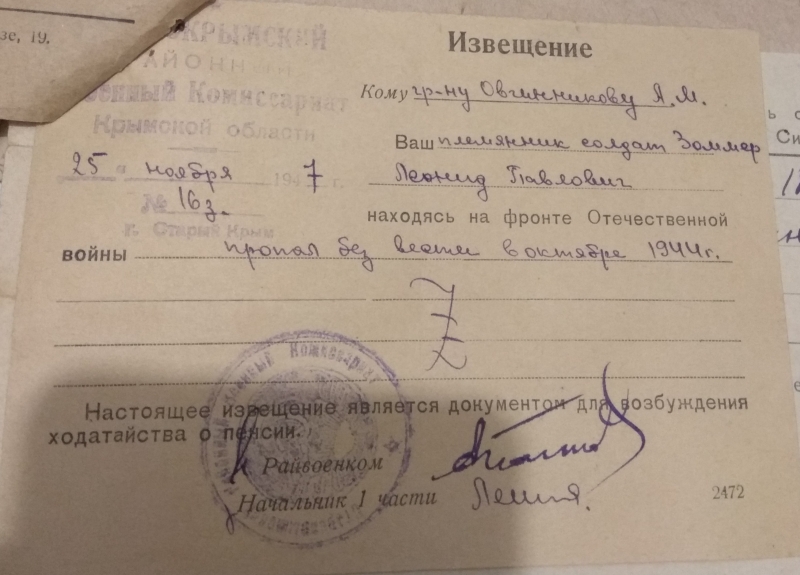 Михаил Константинович Ревинов Родился в селе Ахштырь (сейчас это Адлерский район г.Сочи). Родители Ревинова Анна Павловна и Константин Федорович Папас-оглы. У него было 2 сестры и брат. Был призван на ... читать далее