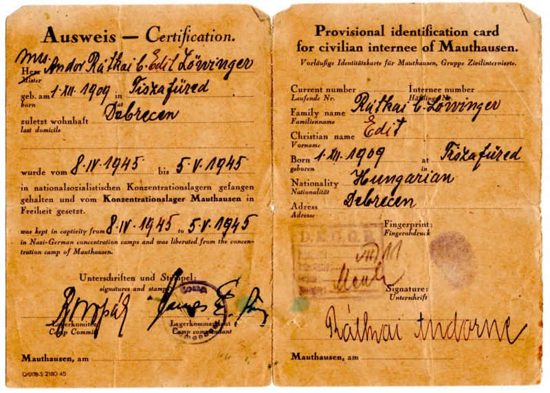 They survived many aspects of the horror of the war together. After shipment on cattle cars from Debrecen to Vienna he was kept in a school and forced to sort rubble after bombings. At the age of 76 years, Sándor was forced on the death march from Vienna to Mauthausen together with his daughter-in-law Edit and granddaughter Judit Rátkai. His nine-year-old granddaughter helped to keep him going so as to avoid being shot. All three of them survived the death march only to be interned in the overcrowded horrific tent camp behind the Mauthausen main camp for most of April 1945.