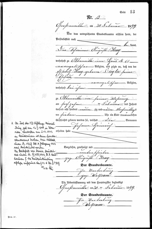 Eltern: Krug, August (Schreiner), Krug, Elisabeth, geb. Diegeler, Haus-Nr. 61 in Altenritte, heute Baunatal-Altenritte, Deutschland. Evangelischer Religion, getauft am 12.3.1899 in Altenritte im ... weiterlesen