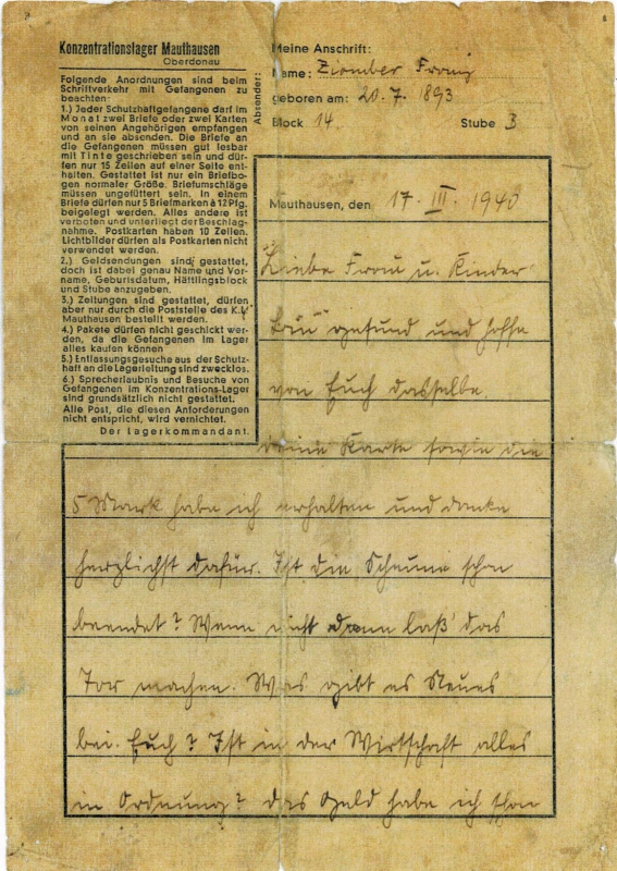 Gestorben 1.4.1940 in Mauthausen