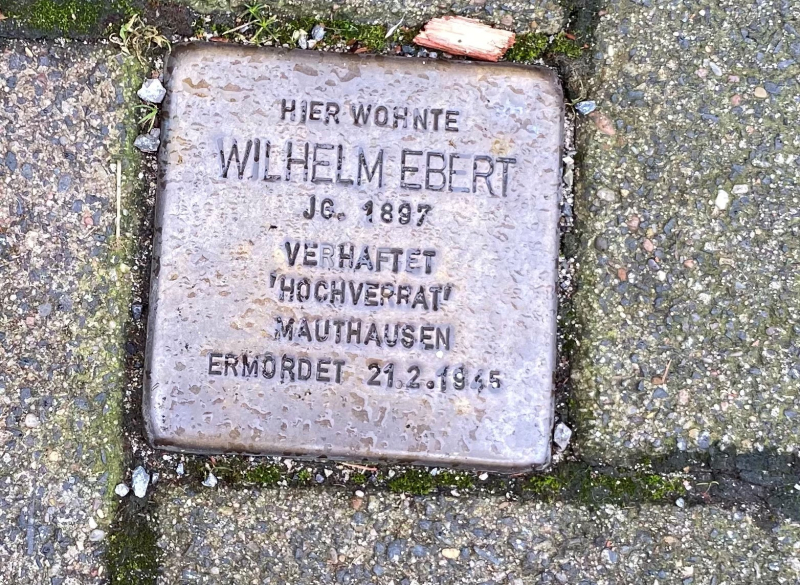 Wilhelm Ebert war Metallarbeiter in Bielefeld und überzeugter Kommunist. Er wurde vom NS-Regime verfolgt, mehrmals inhaftiert und 1936 wegen „Vorbereitung zum Hochverrat“ zu mehr als zwölf Jahren Zuchthaus verurteilt. Er starb im Februar 1945 im Konzentrationslager Mauthausen.