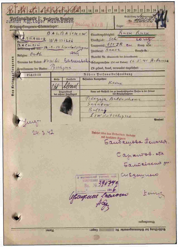 Василий Васильевич Балбашов / Wasilij Wasilewitsch Balbaschow 1914 - 1942