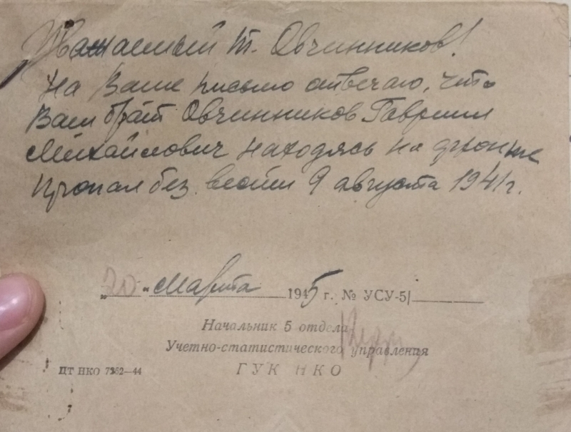 Капитан в/ч 1080 674 сп150 сд 9 арм. Родился в семье из 6 детей:один из братьев - Овчинников Александр Михайлович (1907 года рождения). Состоял в двух браках. Первый Овчинникова Анна Гавриловна , дет ... читать далее